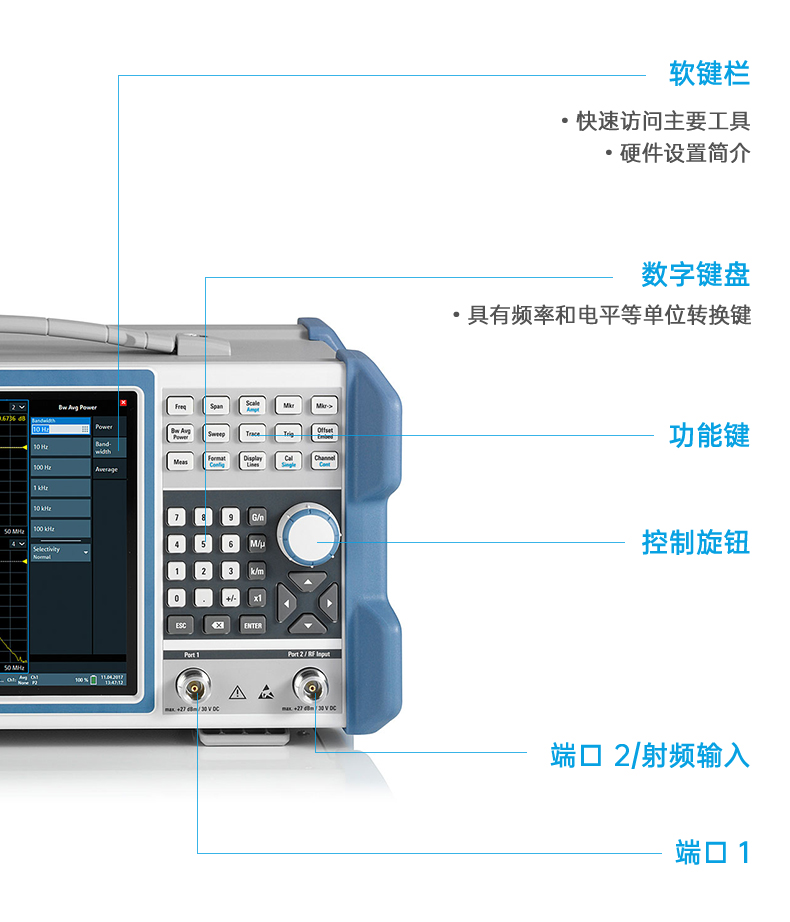 宽频率范围,介于 5 kHz 至 20 GHz 提供高达 26.5 GHz 的可选频谱分析和功率探头支持 连续波信号发生器频谱分析选件 经济高效,便携(电池供电选件),精准,多功能