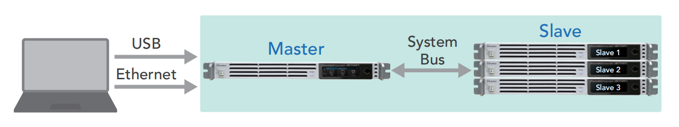 使用者需考虑具备体积小、重量轻、设备利用率高、可弹性拆装组合为多套电源系统之弹性调度及系统故障维护时间所影响研发与生产等议题,62000E系列直流电源具有主/从控制模式,可并联4台最大功率达20kW,使并联操作模式快速简易方便于研发实验室、验证单位及生产线使用。在此模式中,主机将设定数值下载数据到从属单机,此编程非常简单且使用者操作方式相同于单机模式,并联系统采用数位式均流设计具高稳定性及抗噪声干扰。