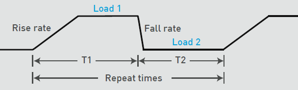 63200E系列内建255组可编程负载时序,供用户模拟各种不同的真实拉载状况。可单一时序(Sequence)负载重复拉载与全部时序负载重复拉载,每个时序的最小时间为100毫秒(ms),分辨率为100毫秒,以下举例说明一般常见的编程时序应用。