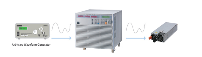 63200系列电子负载可透过电脑将预先储存的电流波形透过DAQ卡或任意波形产生器将波形传送至电子负载进行拉载。任意波形模拟的功能可观察待测物应用在该领域时所遇到的真实波形是否能维持正常运作。