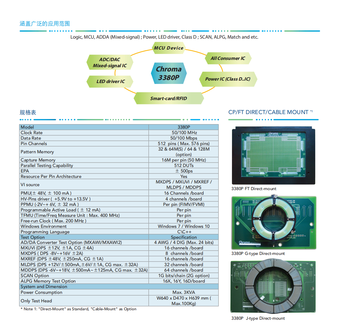 为因应未来IC晶片须具备更高速度及更多脚位及更复杂功能的IC晶片,Chroma新一代VLSI测试系统3380D/3380P/3380除采用更弹性架构外,整合密度更高且功能更强大。