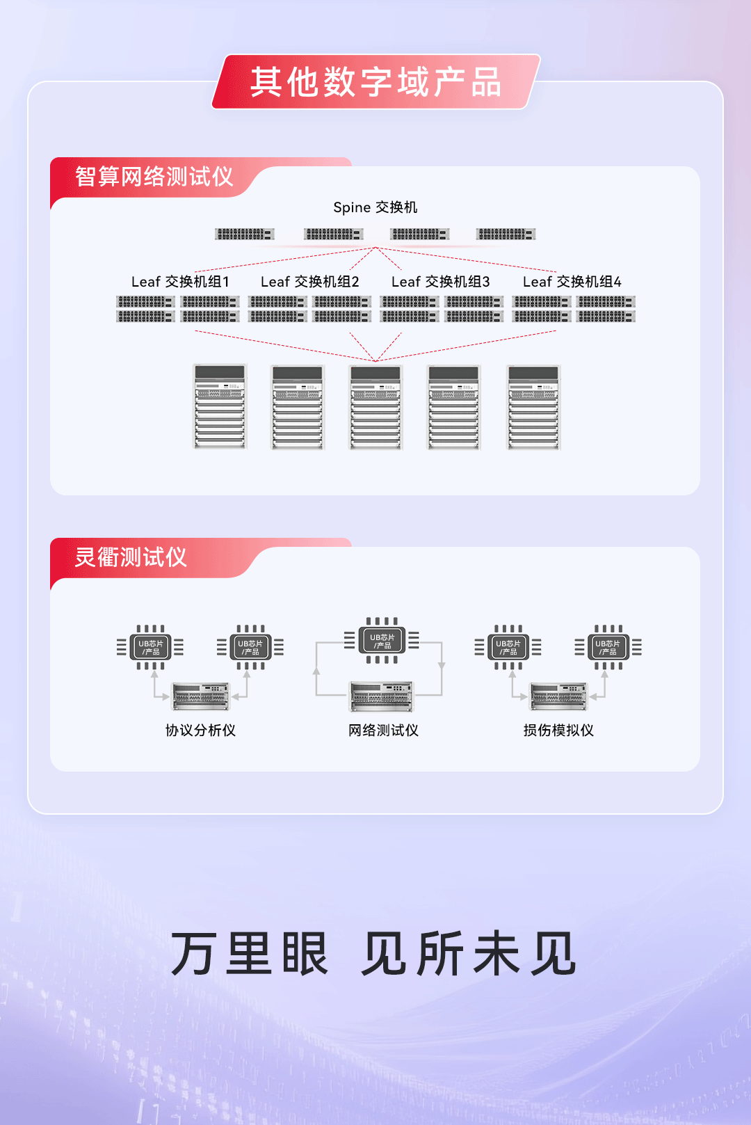 持续夯实高速发展的数字世界万里眼数字网络测试仪,为数据密集型和计算密集型场景提供复杂组网与极限性能测试解决方案,加速产品市场突破。
